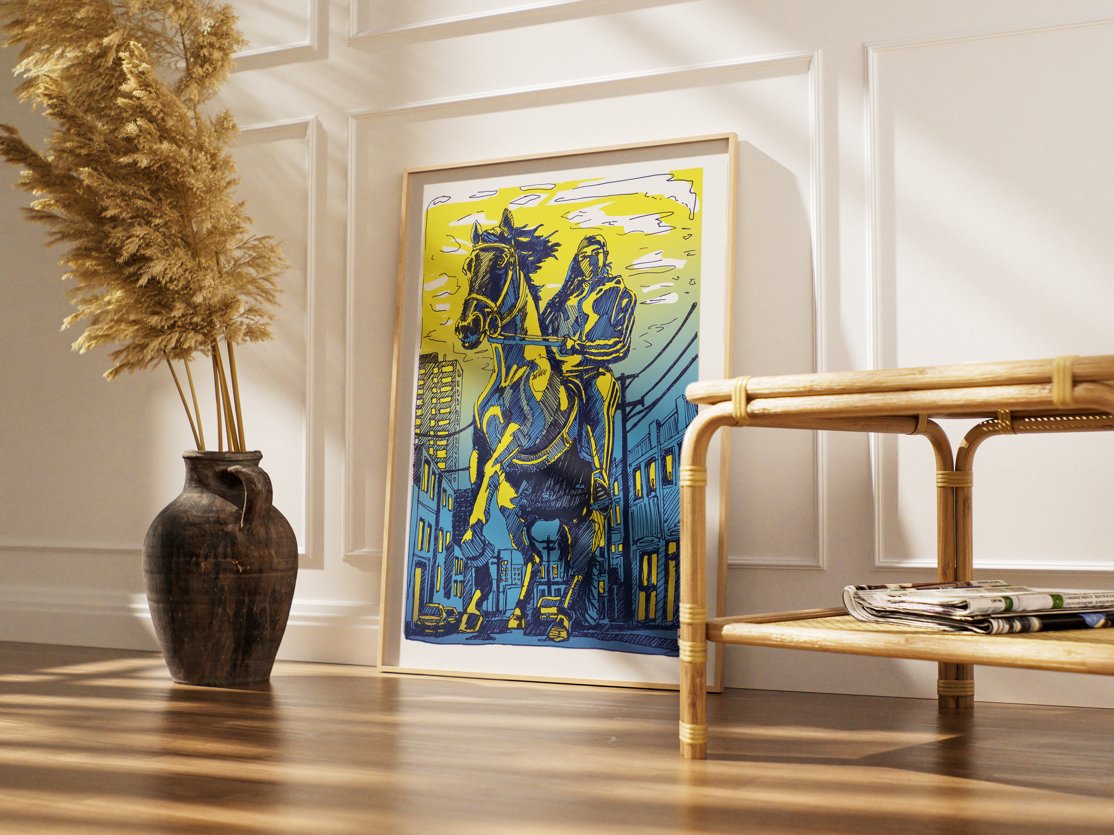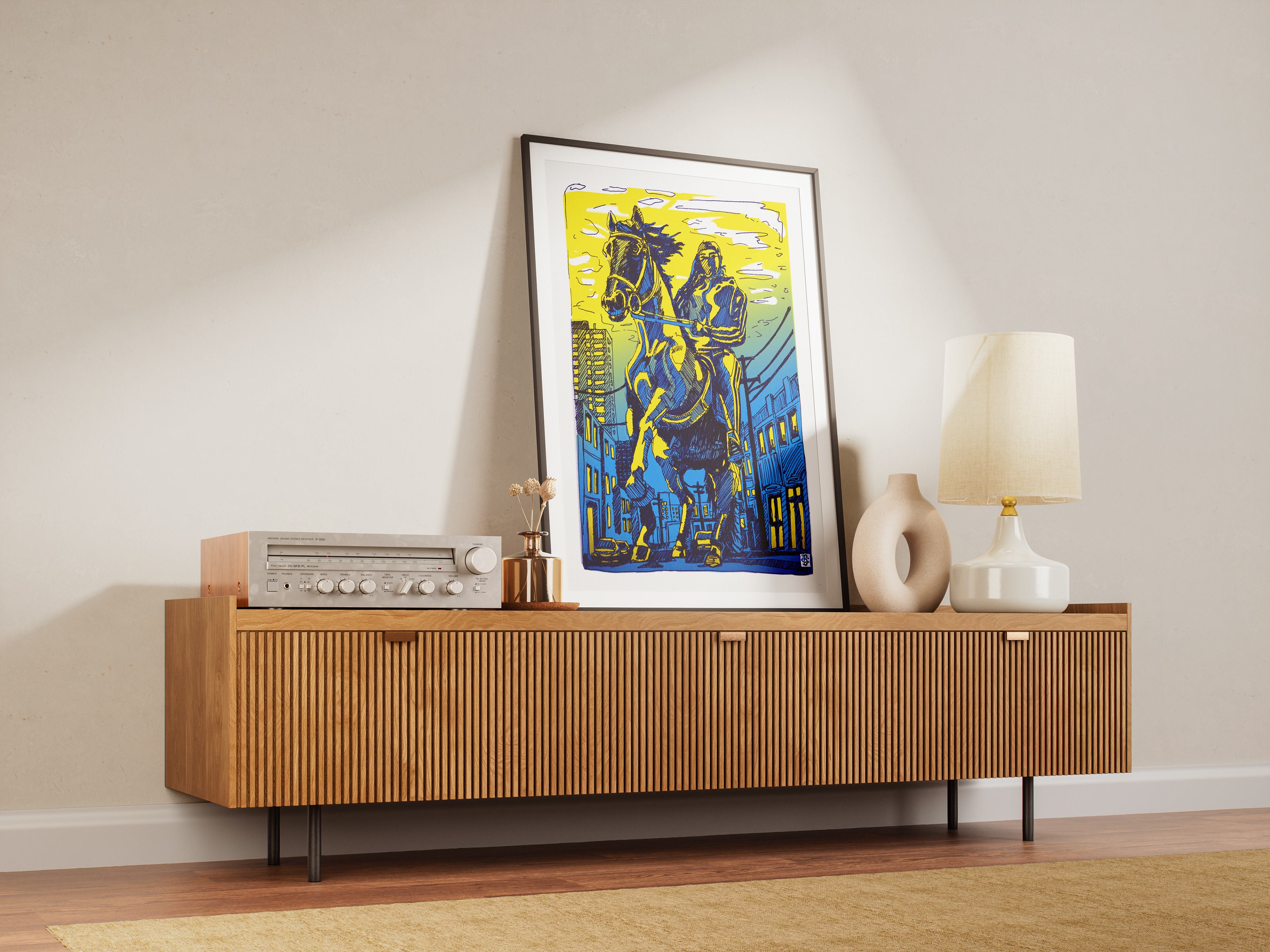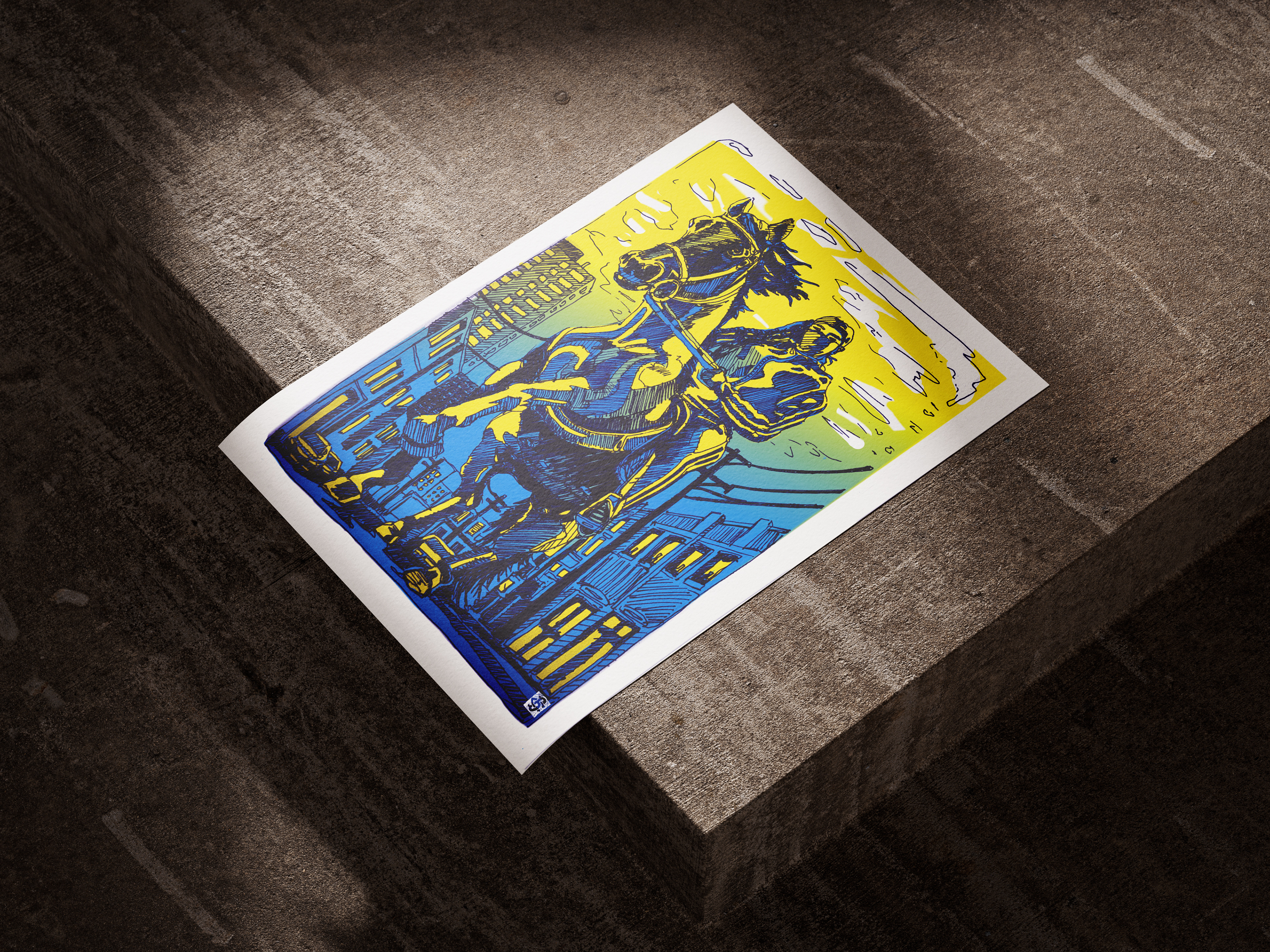 "An exploration of nocturnal motion and the vibration of ink. This piece captures the fleeting energy of a silhouette in transit, translated through the raw, textured lens of risography."